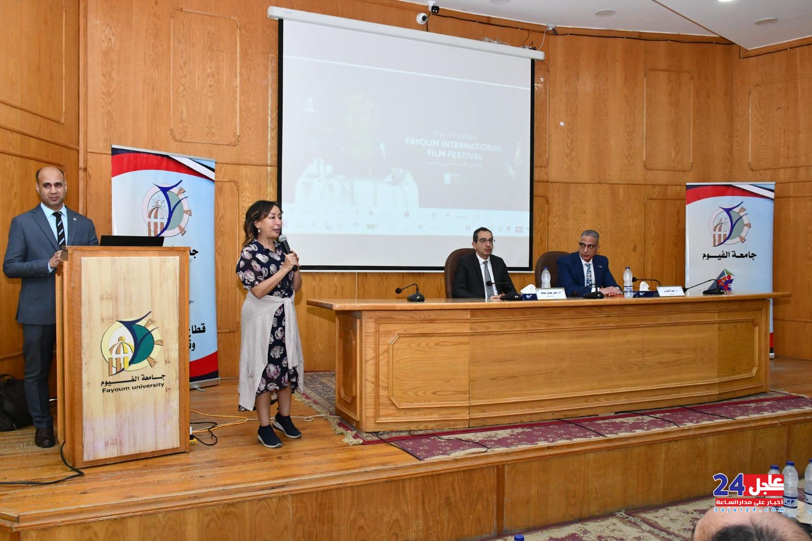 وحرص الدكتور أحمد الأنصاري محافظ الفيوم على حضور الافتتاح رفقة الدكتور ياسر مجدي حتاتة رئيس الجامعة والفنان سيد عبد الخالق مدير المهرجان والناقدة ناهد صلاح المدير الفني للمهرجان بمشاركة عدد من القيادات التنفيذية وعدد كبير من الطلاب وذلك بالمكتبة المركزية بجامعة الفيوم.