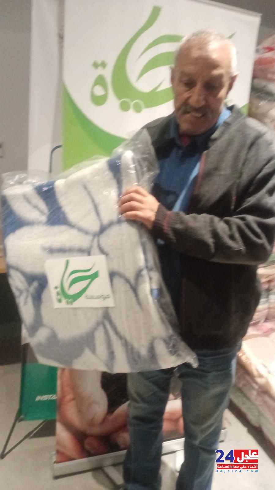 كما تم توزيع الاعانات من البطاطين والاغذية على الأسر الأكثر احتياجا من أهالي المنطقة،