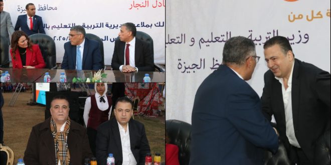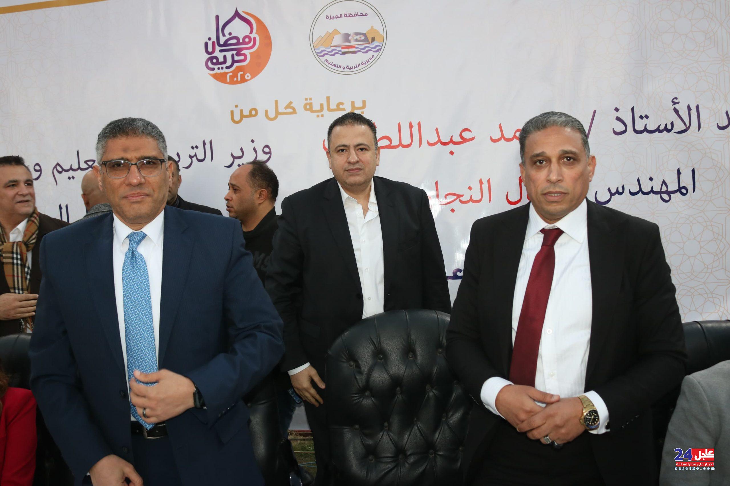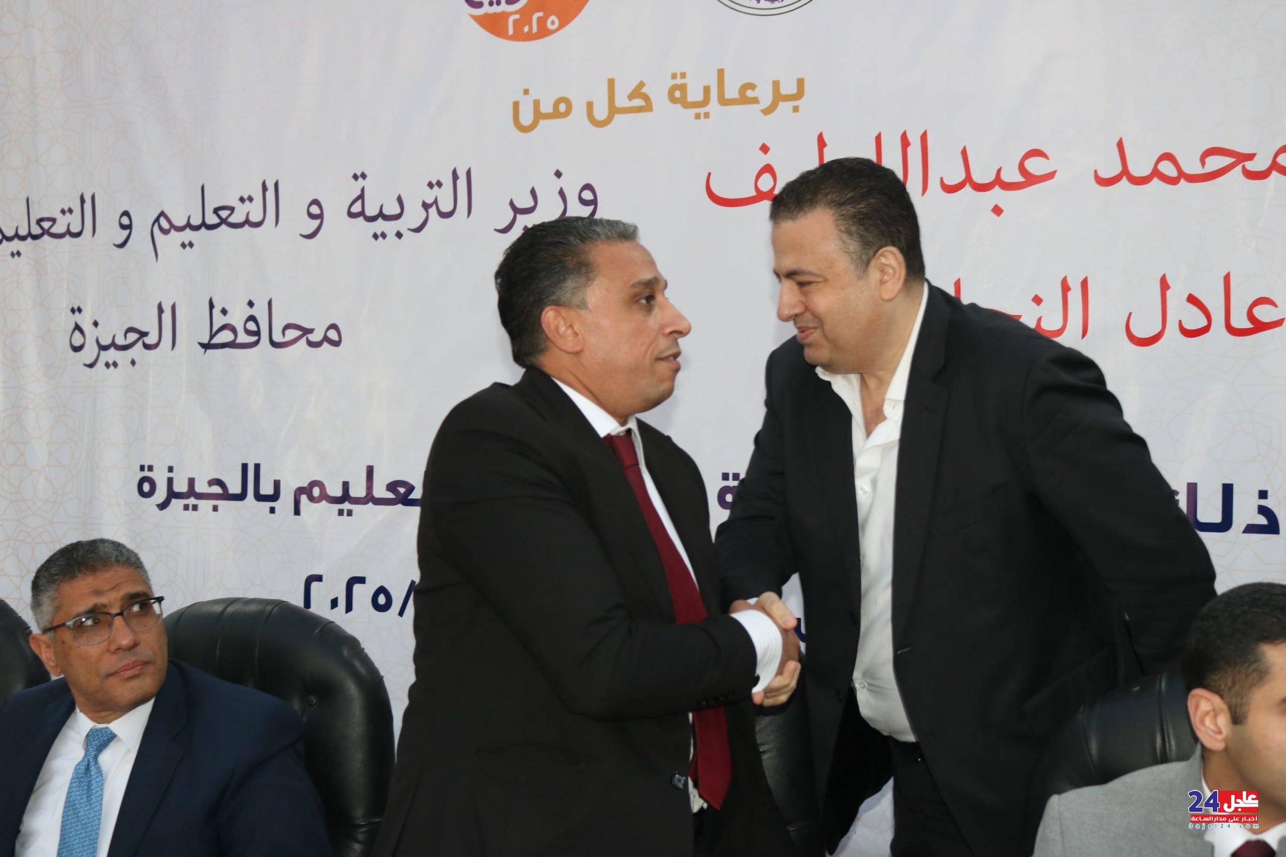 الدكتور محمد الزهار يتوسط محافظ الجيزة ووكيل مديرية الجيزة التعليمية