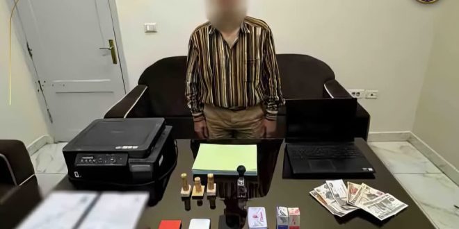 أكدت معلومات وتحريات اللواء أحمد البستاني مدير مباحث قطاع الأحوال المدنية قيام أحد الأشخاص ومقيم بدائرة قسم شرطة ثان الزقازيق بالشرقية بمزاولة نشاط إجرامى تخصص فـى تزوير المحررات الرسمية مقابل مبالغ مالية عقب تقنين الإجراءات تم ضبطه وبحوزته (عدد من الأختام والأكلاشيهات منسوبين لجهات مختلفة – عدد من المستندات والشهادات “مزورة ومعدة للتزوير” – الأجهزة والأدوات المستخدمة فـى نشاطه الإجرامى– مبلغ مالى “من متحصلات نشاطه الإجرامى”).