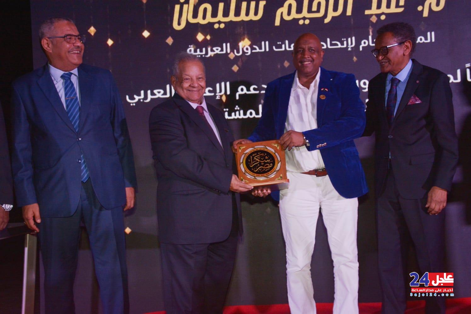 واشاد سليمان بالعلاقات القوية بين السودان ومصر فهي بلده الثاني ويأمل دوام التوفيق لهما واكد على ان هذا التكريم سيكون حافزا له لبذل المزيد من الجهد في رفعة الاعلام العربي الى عنان السماء.