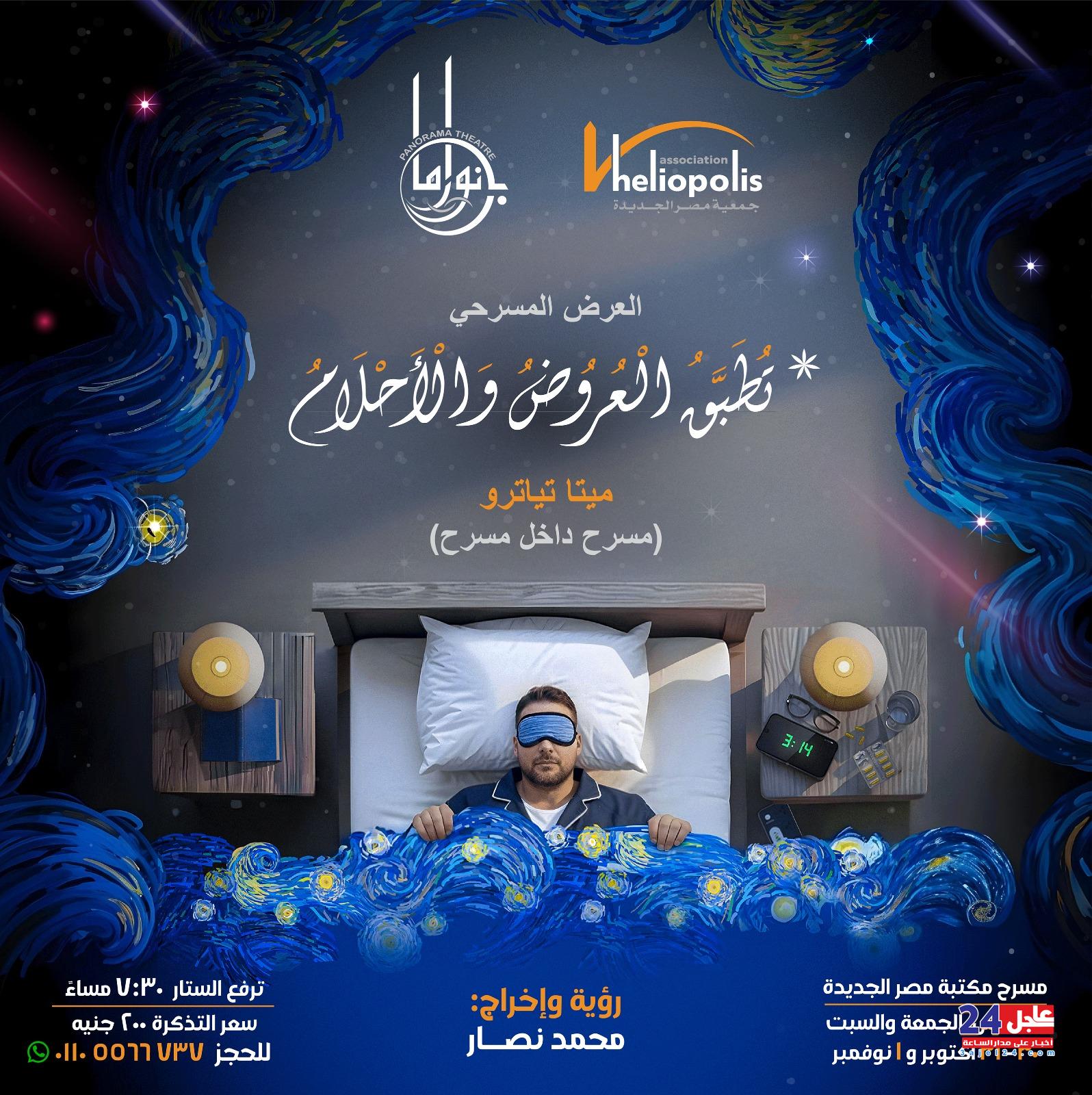 يستعد فريق مسرح بانوراما بالتعاون مع مكتبة مصر الجديدة لتقديم العرض المسرحي الجديد “تُطبّق العروض والأحلام”، وذلك على خشبة مسرح المكتبة أيام الخميس، الجمعة والسبت الموافق ٣٠ و٣١ أكتوبر و١ نوفمبر ٢٠٢٥، في تمام الساعة السابعة والنصف مساءً.