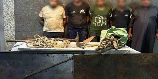 أكدت معلومات معلومات وتحريات المقدم أحمد جمعة رئيس مباحث المطرية قيام 5 أشخاص بالتنقيب غير المشروع عن الآثار داخل أحد العقارات الكائنة بدائرة قسم شرطة المطرية، وبإخطار اللواء علاء بشندي مدير الإدارة العامة لمباحث القاهرة كلف اللواء علي نور الدين نائب المدير العام والعميد سمير مجدي رئيس مباحث قطاع شرق القاهرة للقبض على المتهمين، وعقب تقنين الإجراءات تمكن الرواد أيمن فخري ومحمد ابو النجا ومحمد شوقي ومحمد ابو الدهب وأحمد عاشور وعلي قاسم ضباط مباحث القسم من ضبطهم حال قيامهم بأعمال الحفر، وبحوزتهم الأدوات المستخدمة في الحفر وبمواجهتهم أمام العميد أحمد يحيى مفتش المباحث اعترفوا بارتكابهم الواقعة على النحو المشار إليه وتم تحرير المحضر اللازم وأمر اللواء هاني محفوظ مدير الإدارة العامة لقطاع الشرق واللواء وائل موسى مساعد فرقة الشرق والعميد علاء عبد الدايم مأمور قسم شرطة المطرية بإحالة المتهمين إلى النيابة العامة لمباشرة التحقيق.