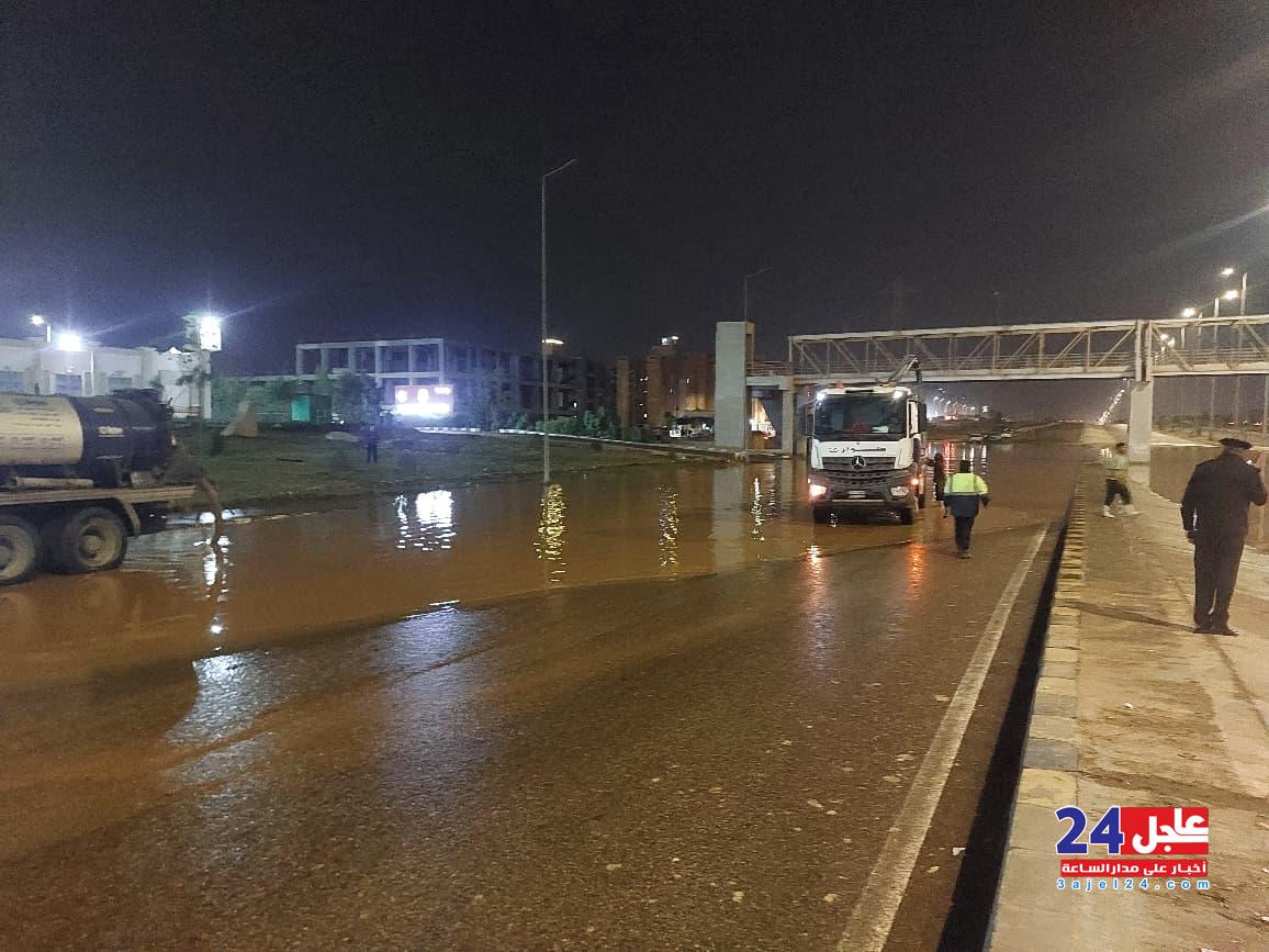 تحويلات مرورية بعد كسر ماسورة مياه بطريق الواحات