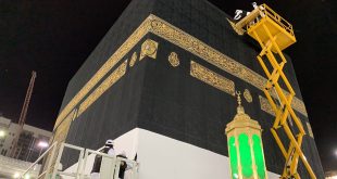 شاهد بالصور:الكعبة المشرفة ترتدى كسوتها الجديدة بالمسجد الحرام